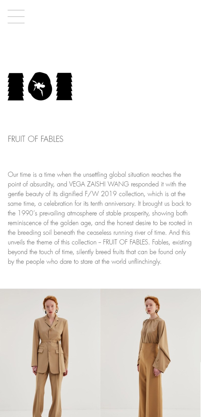 Particular in design and material selection and tailoring, VEGA ZAISHI WANG tries meticulously to take in the pith and marrow of Western culture into Eastern philosophies and to create the stories that are beautifully incarnated through its every collection. These stories are VEGA ZAISHI WANG’s engaging discussions on and interpretations of the dynamic and evolving female image and identity, which are also the brand’s core attraction to women of different cultural background.