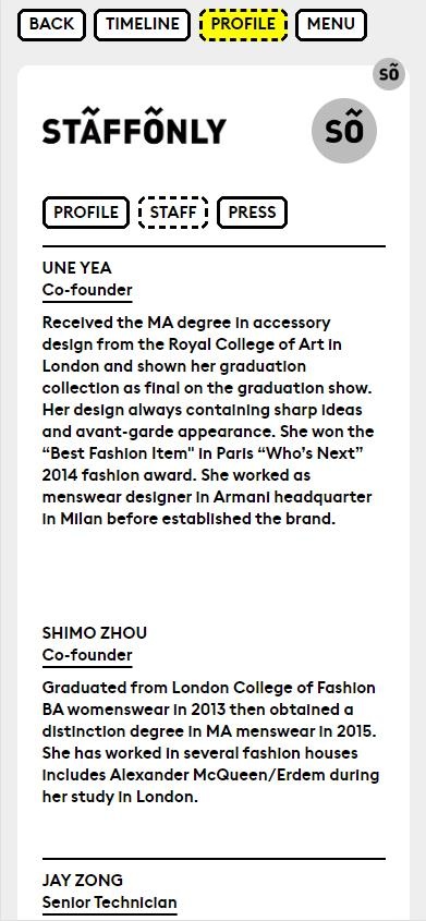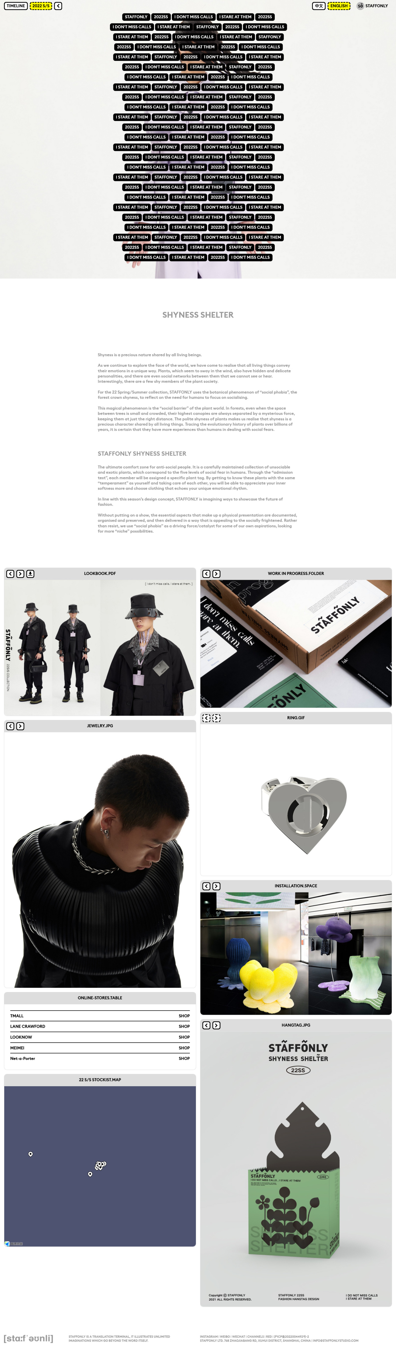 STAFFONLY illustrates unlimited imaginations which beyond the word itself. They focus on the logic hidden from the appearance and the sense of communal recognition from the groups and communities. The development on the fresh concept and identity is the essential first step in the symbiotic design process. It leads to a series of curated materials and colors choices for an ironic and provocative take on fashion that is enhanced by functional and sculpted silhouettes. They visualized that "a STAFFONLY man always has an abundance of curiosity and a sense of humor, and he is willing to break the boundaries and to explore the unknown era of the world."